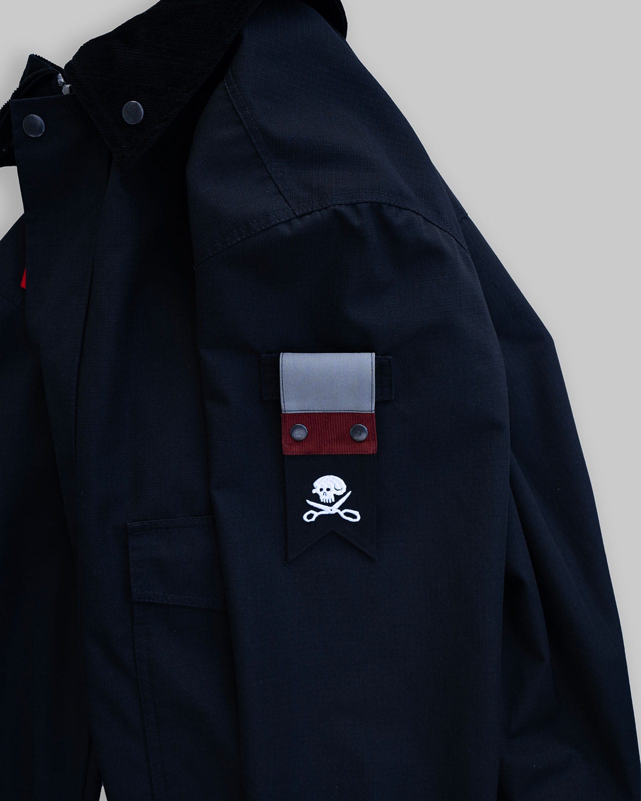 – N.A.P. A flag that can be taken off the shoulder and placed on the lining of the jacket