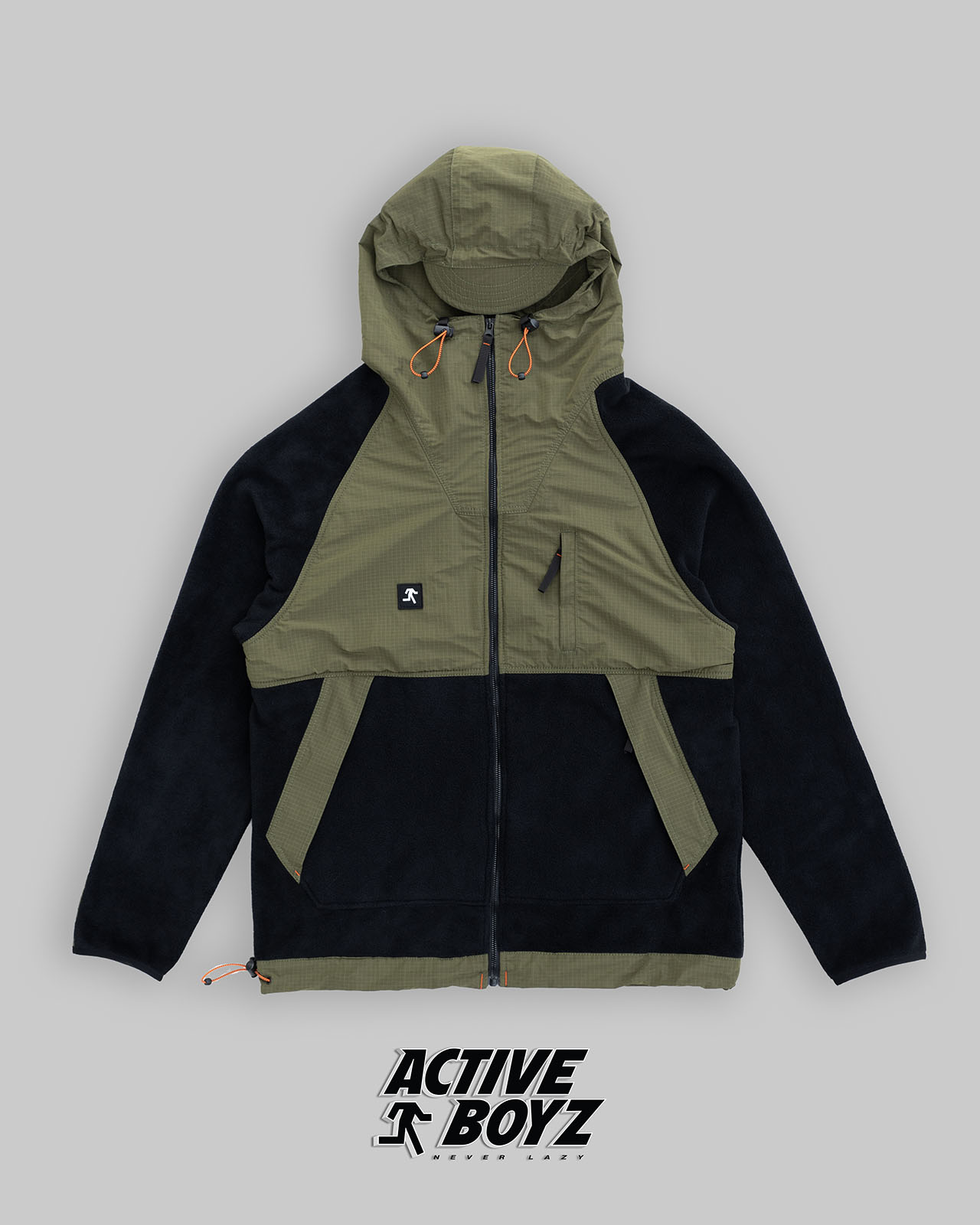 No Matter The Weather Jacket is a hybrid model made out of 380gsm fleece and windproof and water repellent nylon.